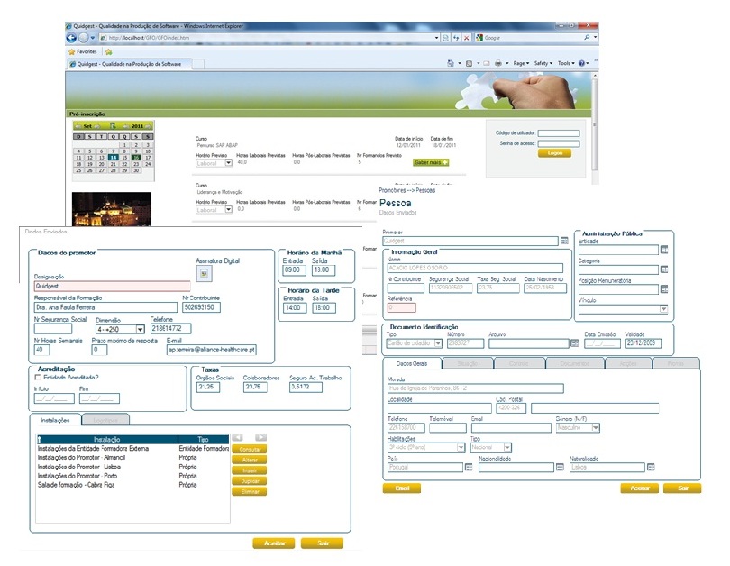 Cada um destes portais web permite aos formadores, formandos e clienres, respectivamente, aceder a